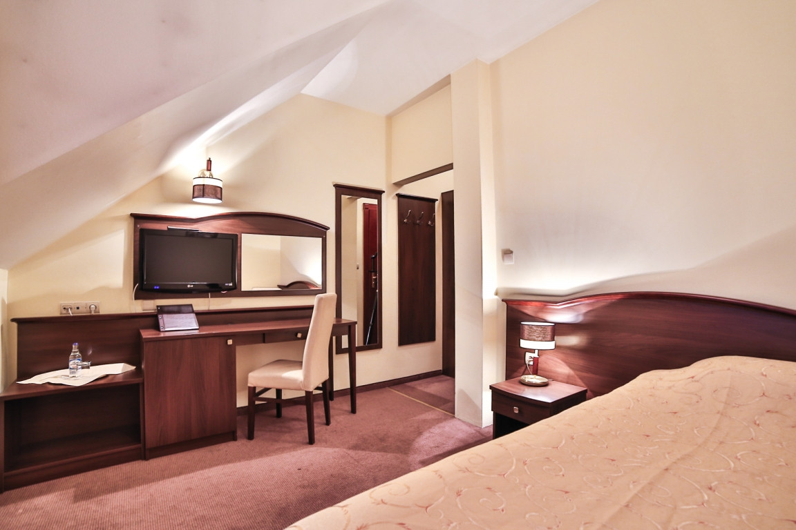 Oprócz stylowych wnętrz restauracyjnych, do dyspozycji Gości oddajemy również komfortową przestrzeń hotelową. Do dyspozycji oddajemy łącznie 40 pokoi klasy standard, biznes oraz de luxe. Niewątpliwym walorem jest również serwowana przez Nas kuchnia. Kreatywność Naszych kucharzy w połączeniu z niebanalnym wyczuciem smaku i proporcji w przyrządzaniu potraw sprawiają, iż możemy pochwalić się kuchnią na najwyższym poziomie, która zadowoli najbardziej wymagające gusta.