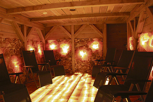 Groty solne świetnie sprawdzają się jako miejsca wypoczynku. Przyjemna dla oka podświetlona sól na ścianach w połączeniu z jej zdrowotnym działaniem tworzy idealną atmosferę relaksu i odprężenia. Dla Inwestora prywatnego, który pragnie cieszyć się zdrowotnym działaniem soli oraz podziwiać jej piękny pomarańczowy kolor, dajemy możliwość budowania podświetlonych ścianek solnych oraz mini tężni solankowych, gdzie przy szumie solanki spływającej po tarninie możemy w pełni się zrelaksować.