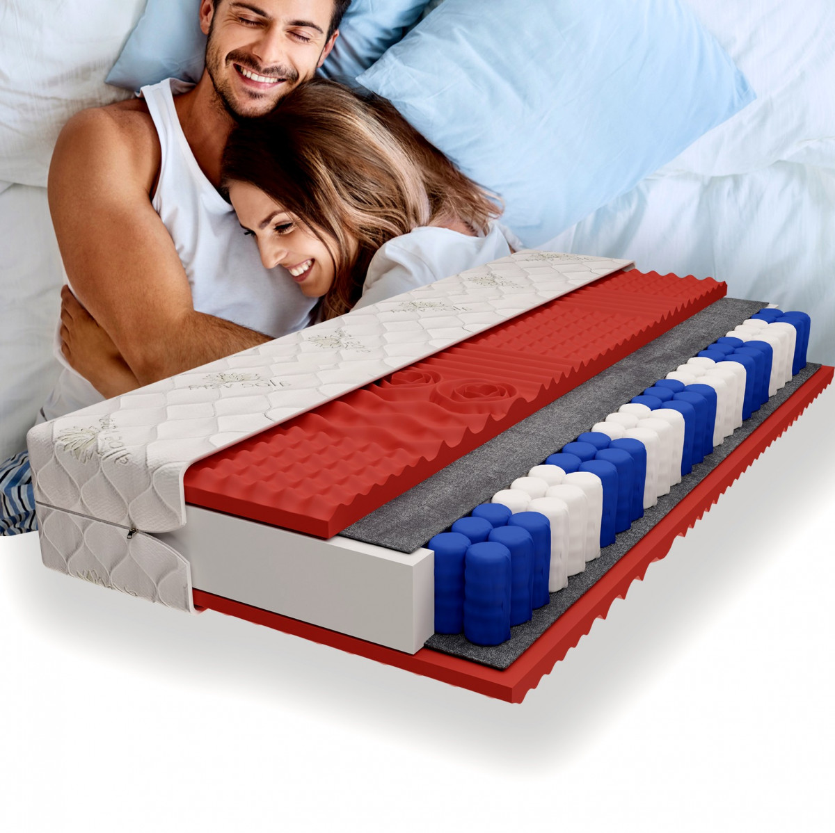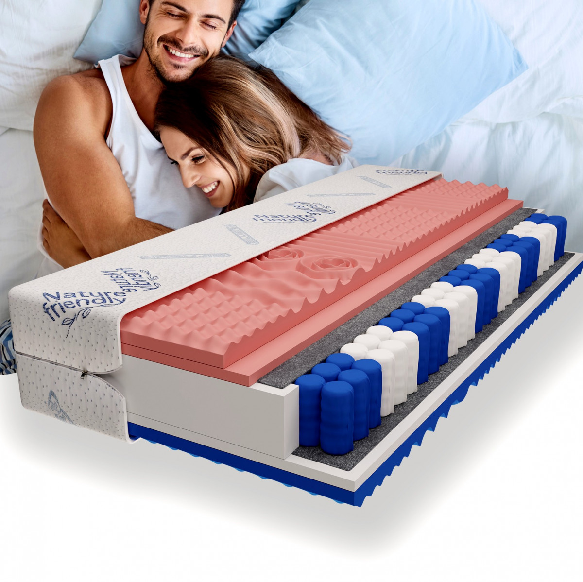 Idealne dla par – każda sprężyna pracuje niezależnie, co pozwala na dopasowanie materaca do kształtu ciała i różnic w wadze użytkowników. Strefy twardości zwiększają komfort snu.