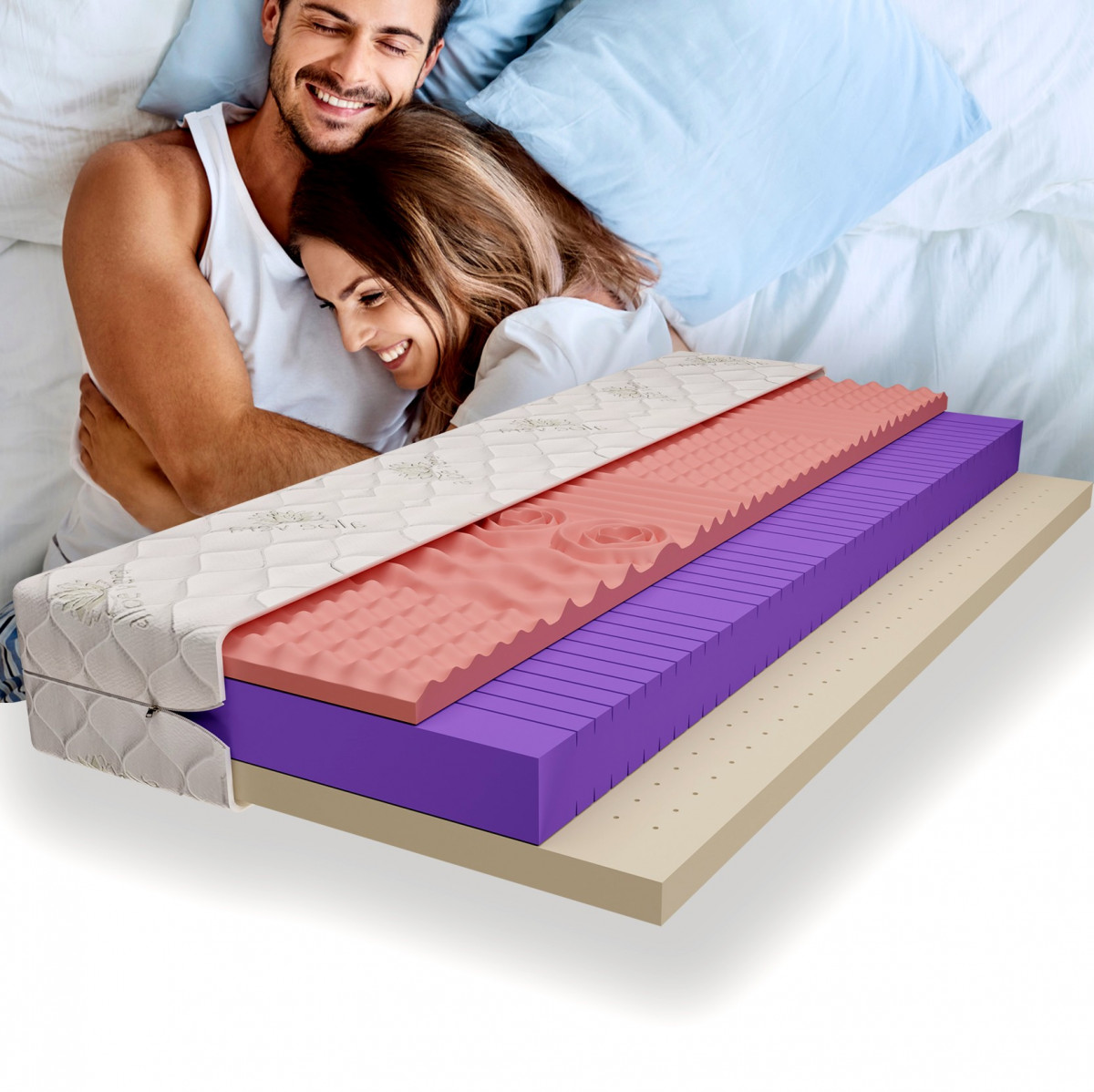 Wytrzymałe i przewiewne dzięki naturalnej macie kokosowej. Połączenie różnych materiałów – od pianki, przez sprężyny, po lateks – sprawia, że materac jest wielofunkcyjny i trwały.