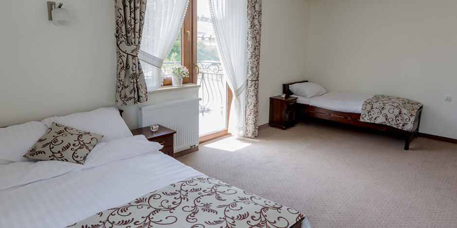 Oferujemy również smaczną i domową kuchnię z śniadaniem w formie bufetu szwedzkiego oraz obiadokolację z deserem.