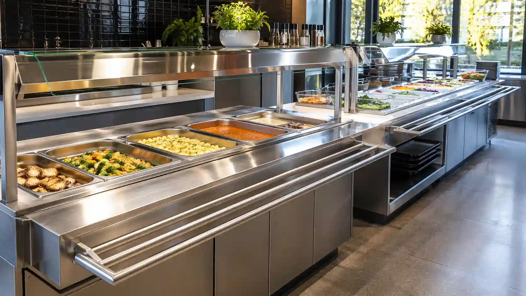 gdy obiekt wydaje więcej posiłków, chce lepszej prezentacji bufetu i potrzebuje dłuższej, bardziej reprezentacyjnej linii samoobsługowej.