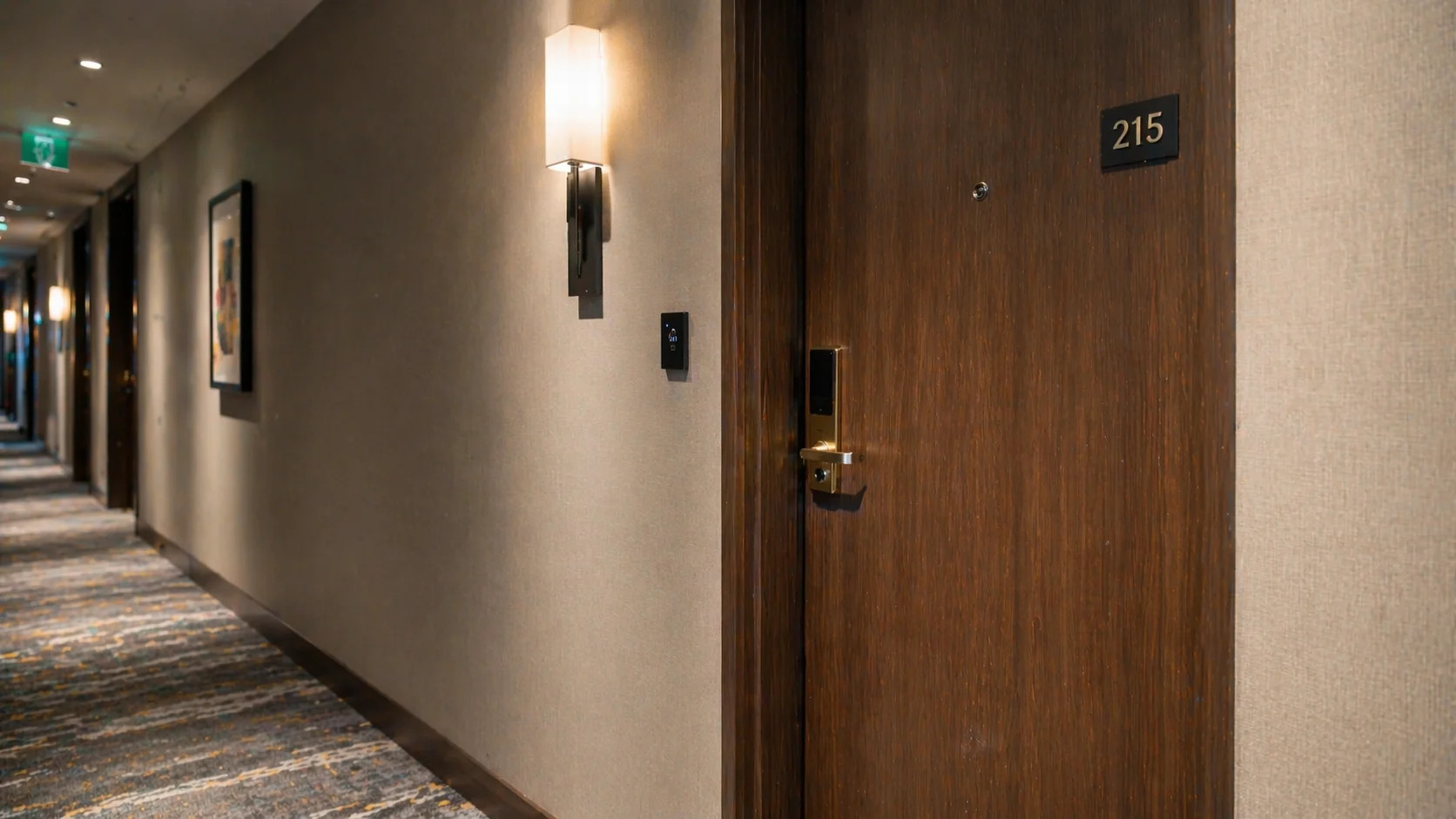 Drzwi wejściowe do pokoi nie muszą być ognioodporne, ale powinny spełniać wymogi akustyczne (zwykle Rw min. 30–32 dB) i być kompatybilne z systemem zamków hotelowych. W niektórych projektach inwestorzy decydują się na wersje EI30, choć nie są one obowiązkowe – dla ujednolicenia z ciągami komunikacyjnymi.