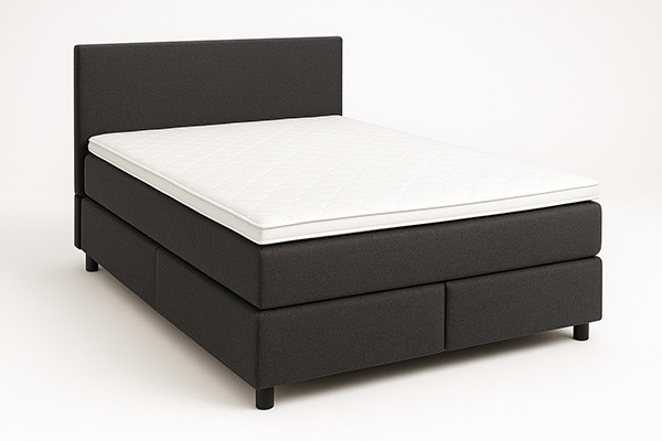 | Łóżko kontynentalne (boxspring) | Spotykane w hotelach wyższego standardu. Konstrukcja trójwarstwowa: dolna baza sprężynowa (box), pełnowymiarowy materac kieszeniowy lub bonellowy oraz topper. Wysokość siedziska zwykle 60–65 cm, co podnosi komfort wstawania. Wykończenie najczęściej w tkaninach tapicerskich kontraktowych. Atuty: wysoki komfort snu, izolacja akustyczna. Wady: duża waga, trudniejsza logistyka transportu, więcej elementów serwisowych. |