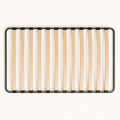 | Stelaż listwowy elastyczny | Listwy z drewna warstwowego (buk/brzoza) w elastycznych uchwytach; gęstość listew dobiera się do obciążenia. Zapewnia wentylację materaca i amortyzację ruchów. Wymiana: możliwa pojedynczych listew lub całego kosza. Kontrola: okresowe dokręcenie łączników, wymiana zużytych gum/uchwytów. Objawy zużycia: trzaski przy obciążeniu, pęknięcia listew, lokalne „dziury” podparcia wpływające na żywotność materaca. |