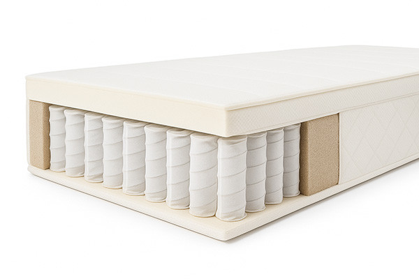 | Materac sprężynowy kieszeniowy (pocket / multipocket) | Każda sprężyna w osobnej kieszonce dla podparcia punktowego i niższej transmisji ruchu. Wersje multipocket mają większą gęstość sprężyn na m², co podnosi trwałość i stabilność. Często łączony z warstwami pianki HR, lateksu lub z topperem dla komfortu i higieny. |