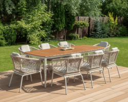 Aluminium to jeden z najpopularniejszych materiałów używanych do produkcji mebli ogrodowych, zwłaszcza w branży hotelarskiej i gastronomicznej. Jego główną zaletą jest lekkość, co sprawia, że meble wykonane z aluminium są bardzo łatwe do przenoszenia i aranżacji, nawet w większych przestrzeniach na zewnątrz. Jednocześnie aluminium jest odporne na korozję, dzięki czemu może być eksploatowane w trudnych warunkach atmosferycznych, takich jak deszcz, słońce czy wilgoć, bez ryzyka zniszczenia. To sprawia, że jest idealnym wyborem na tarasy, ogródki restauracyjne oraz hotelowe, gdzie wymagana jest wytrzymałość i długotrwałe użytkowanie.