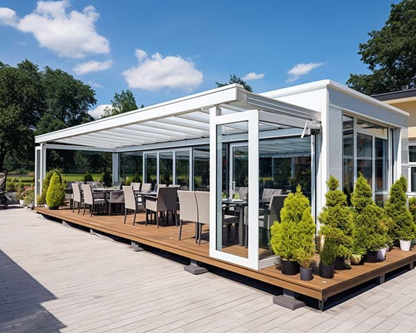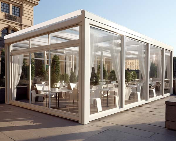 Prostokątne i wielkopowierzchniowe konstrukcje to najczęstszy wybór w restauracjach i hotelach. Dlaczego? Ułatwiają montaż systemów przeszkleń, pozwalają na efektywne rozmieszczenie stolików i barów oraz integrację z istniejącą architekturą. Proste formy redukują koszty, ponieważ można zastosować standardowe moduły szyb i profili, co w dużych realizacjach ma ogromne znaczenie dla budżetu.