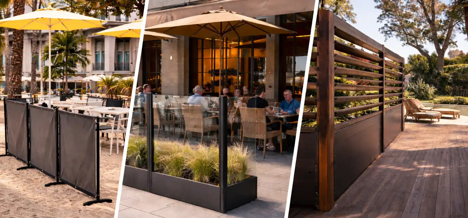 | ~1 500 – 4 000 zł | Standardowe parawany tarasowe; systemy modułowe do łączenia w ciągi; wypełnienia z szyb bezpiecznych, poliwęglanu lub paneli pełnych; wysokości 140–180 cm. Zastosowanie: ogródki gastronomiczne, tarasy przy lokalach. Dostępność: systemy katalogowe. Zakres: 1–2 moduły z łącznikami. Instalacja: podstawy obciążeniowe lub punktowe kotwienie. Montaż: ok. 300–800 zł. |