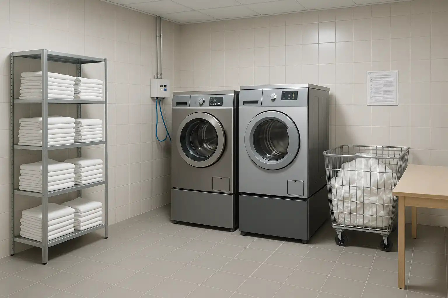 | Pralnia hotelowa | Dobór pralnicowirówek 10–35 kg i suszarek o dużej przepustowości, projekt logistyki brudne/czyste, strefy wydawania bielizny, regały i wózki, analiza szczytowych obciążeń dobowych. | Stała, powtarzalna bielizna hotelowa; duża ilość pościeli i ręczników. |