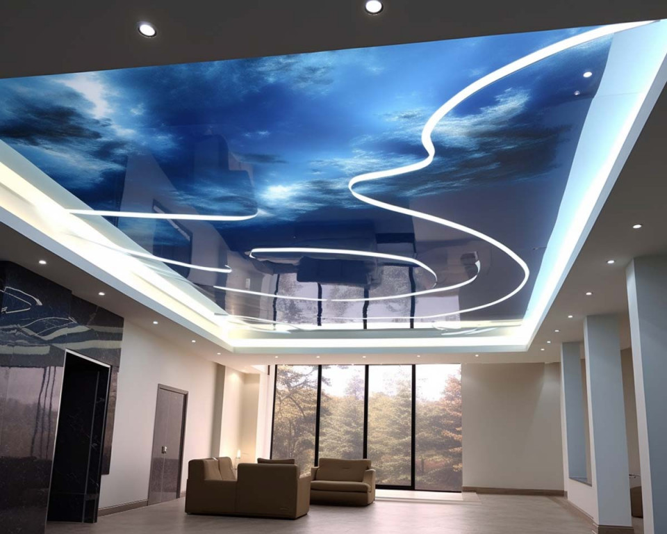 Sufit napinany z nadrukiem: Oferując nieograniczone możliwości w kwestii personalizacji, sufit napinany z nadrukiem umożliwia wprowadzenie indywidualnego stylu do każdego wnętrza. Możliwość wydrukowania dowolnego wzoru, od realistycznych krajobrazów po abstrakcyjne motywy, sprawia, że każde pomieszczenie może zyskać niepowtarzalny charakter. Jest to szczególnie interesująca opcja do przestrzeni tematycznych, jak pokoje dziecięce, sale zabaw, restauracje czy pomieszczenia firmowe, gdzie sufit może stać się centralnym punktem dekoracyjnym.