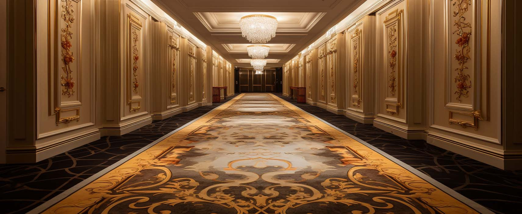 W korytarzach hotelowych najczęściej stosuje się wykładziny dywanowe welurowe, w linearne bądź geometryczne wzory. Tego typu rozwiązanie doskonale sprawdza się w długich i wąskich korytarzach. Coraz częściej jednak można zauważyć nowe trendy na rynku hotelarskim i odejście od klasycznych rozwiązań. Stawia się bowiem na oryginalność, wybierając uwspółcześnione, czasami nawet awangardowe rozwiązania.