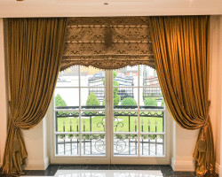 WYKŁADZINY W REGULARNY WZÓR — najpopularniejsze w obiektach hotelowych o wysokim standardzie są wykładziny w charakterystyczny wzór, który składa się z niewielkich kwadratów w kontrastowym kolorze (np. żółte lub złote na ciemnoniebieskim bądź bordowym tle). Podnoszą prestiż miejsca i dodają mu elegancji.