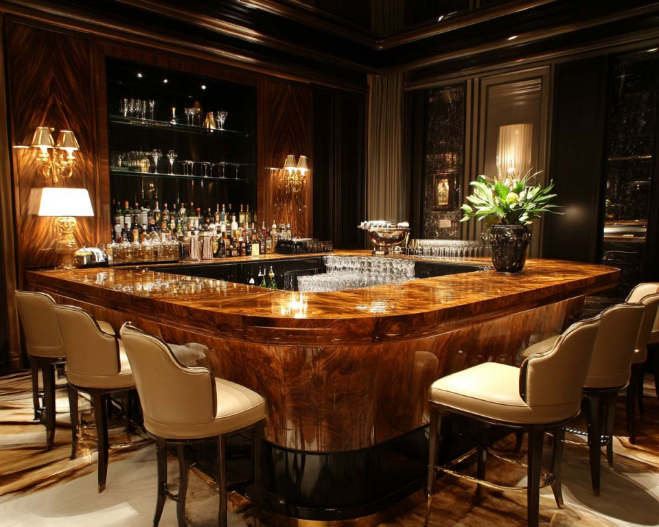 Ostateczny efekt wizualny wynika w dużej mierze z materiałów. Kamień (granit, konglomerat) nadaje barowi ciężaru i elegancji, dobrze sprawdza się w hotelach i miejscach o wyższym standardzie. Drewno ociepla wnętrze, ale wymaga odpowiedniego zabezpieczenia i regularnej pielęgnacji. Stal nierdzewna ma techniczny wygląd, ale jest praktyczna i trwała – chętnie stosowana w części roboczej baru, czasem także widocznie. Szkło i lustra pozwalają optycznie powiększyć bar i lepiej wyeksponować alkohol.