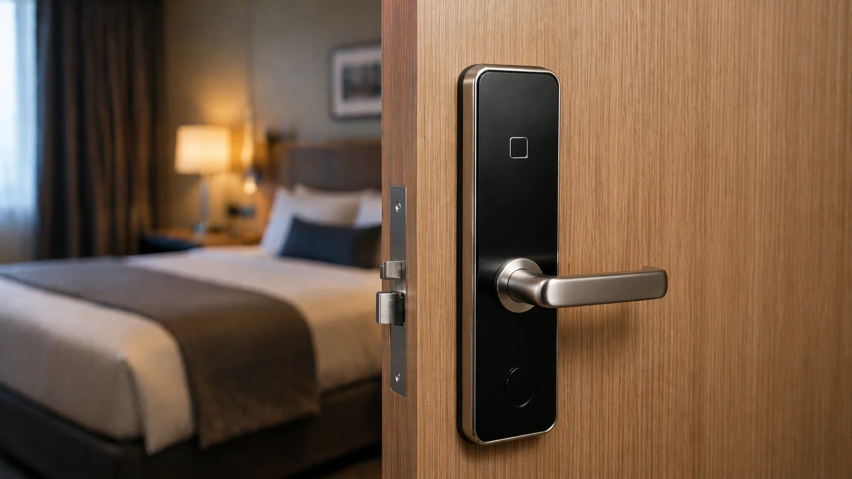 | Zamki elektroniczne na kartę zbliżeniową (RFID/MIFARE) | Obecnie najczęściej stosowana rodzina zamków bezdotykowych. W wariantach podstawowych umożliwiają otwieranie kartą zbliżeniową. W konfiguracjach zaawansowanych wspierają integrację z PMS, zdalne nadawanie uprawnień oraz różne nośniki (karty, breloki, opaski). |