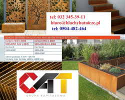 Blachy ze stali corten - jest to rodziaj niskostopowej stali o podwyższonej odporności na warunki atmosferyczne. Powłoka na stali Corten przybiera piękny ciemnoczerwony rdzawy kolor i pięknie prezentuje się w połączeniu ze szkłem, drewnem, cegłą, ale też i naturalnym krajobrazem.