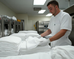 Pralnia wodna obsługująca firmy B2B: hotele, gastronomię, żłobki i przedszkola oraz służby mundurowe. Usługi obejmują pranie pościeli, ręczników, bielizny płaskiej, obrusów, zasłon, narzut oraz pranie odzieży roboczej i mundurów, z odbiorem i dostawą.