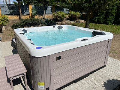 To komfortowe jacuzzi zaprojektowane do codziennego relaksu w ogrodzie lub domowej strefie SPA.