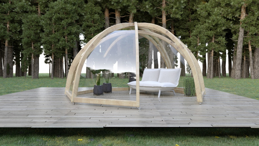 Unikalna konstrukcja altany, która może zostać wykorzystana jako zadaszenie jacuzzi, minibasenu, stołu restauracyjnego, altana ogrodowa, miejsce do ćwiczeń lub terapii, itp.