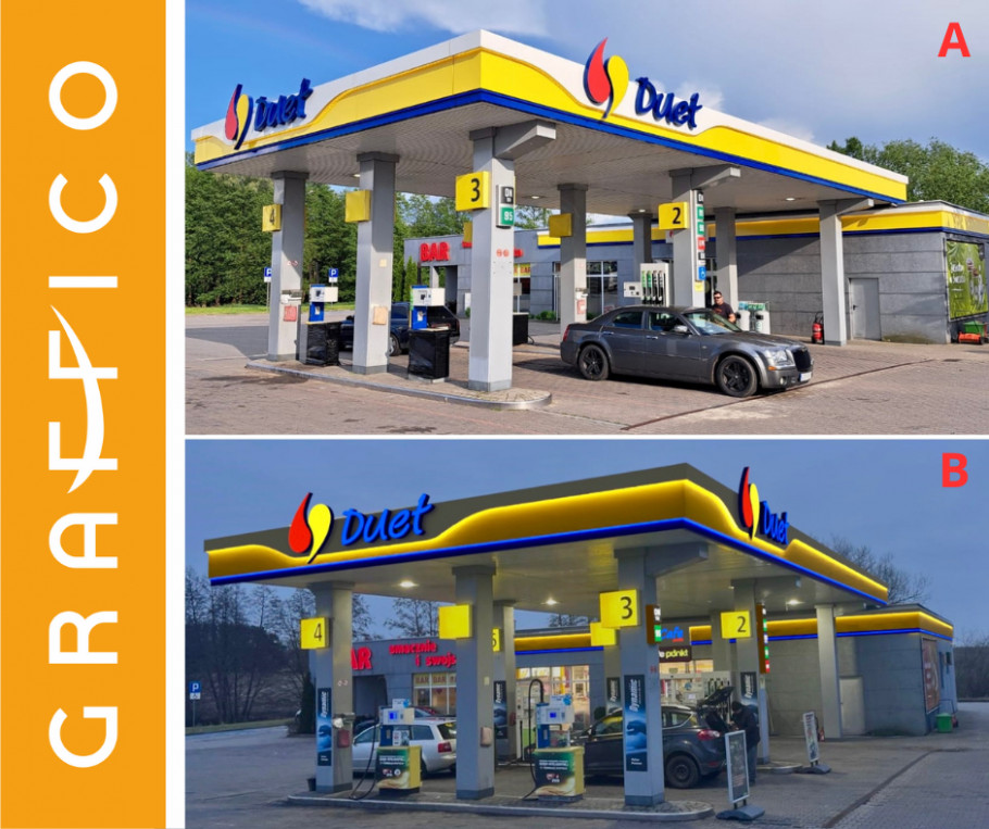 Firma Graffico to doświadczony partner w zakresie brandingu i rebrandingu stacji paliw. Oferujemy pełne wsparcie w tworzeniu lub odświeżeniu identyfikacji wizualnej obiektu – od pierwszych szkiców po gotowe realizacje w terenie. Nasze rozwiązania są funkcjonalne, estetyczne i ściśle dopasowane do standardów marki.