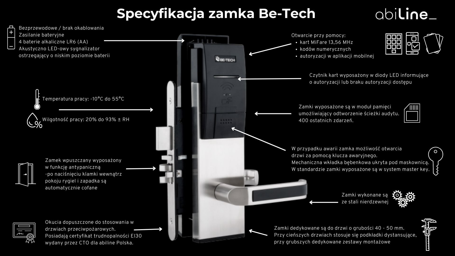 System Be-Tech oparty jest o bezprzewodowe (zasilane bateryjnie) zamki hotelowe.