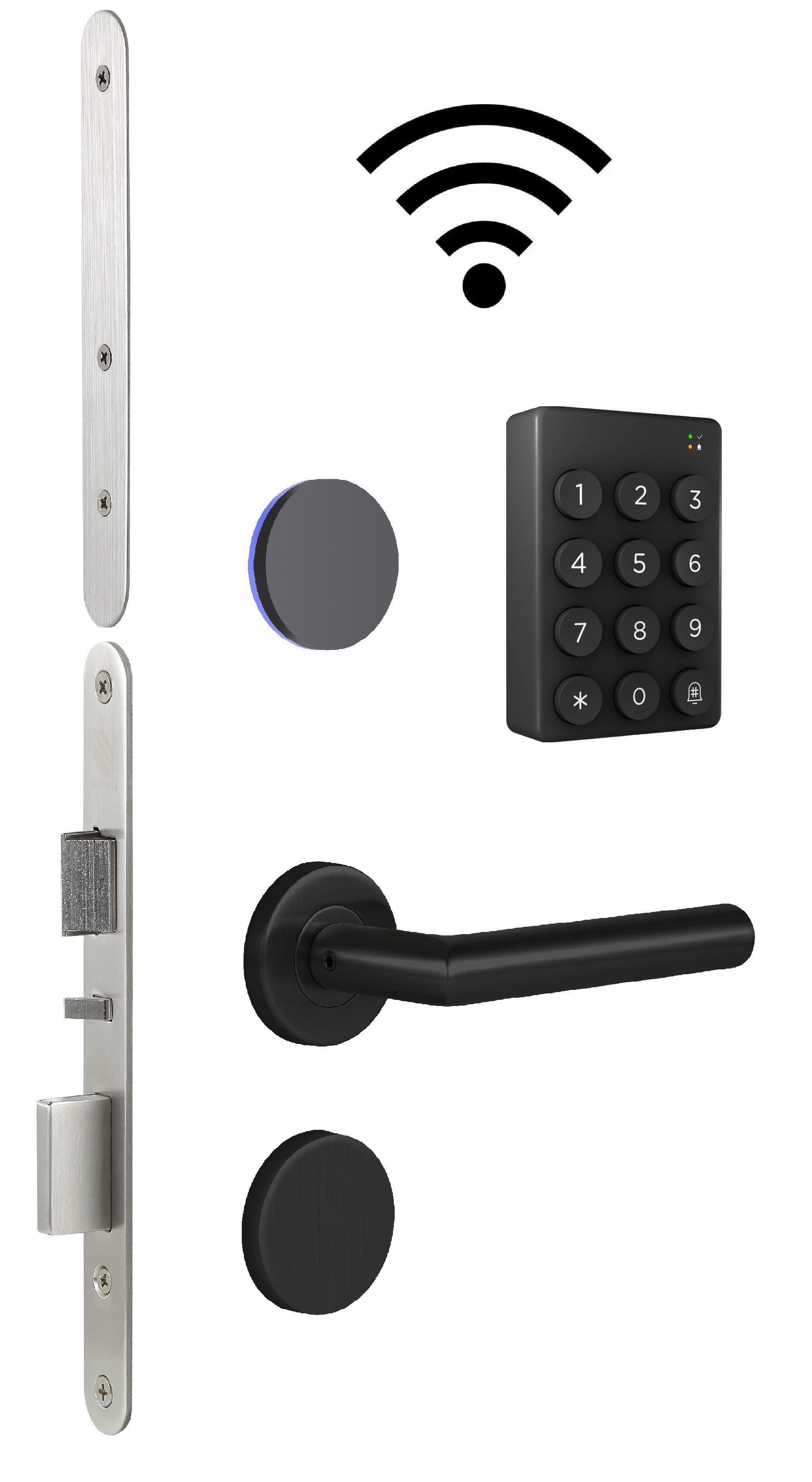 - Opcjonalnie możliwość otwierania zamków przy pomocy aplikacji mobilnej dzięki zastosowaniu modułu Bluetooth wewnątrz okucia oraz przy pomocy kodów dzięki zastosowaniu bezprzewodowych klawiatur numerycznych