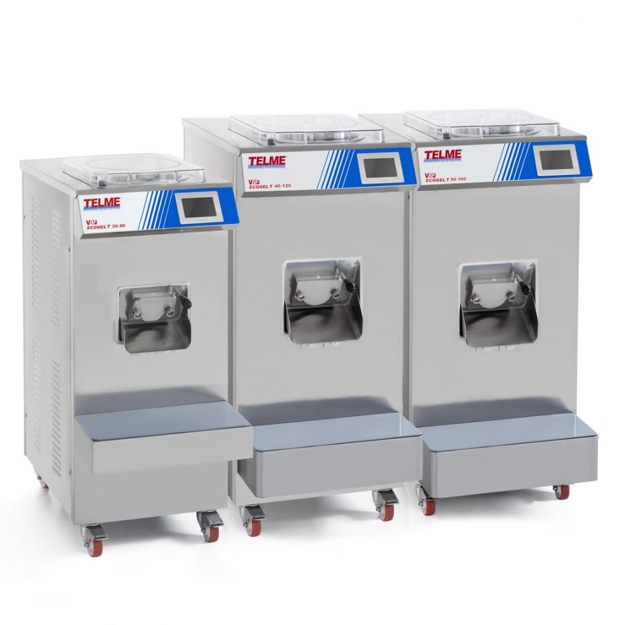 Funkcjonalny frezer do lodów ECOGEL T40-120 z serii TOP LEVEL został wyposażony w wytrzymały, pięciocalowy dotykowy wyświetlacz oraz opatentowany system podwójnego schładzania cylindra, który zapewnia znaczną oszczędność wody i energii. Frezer umożliwia szybką i pełną ekstrakcję produktu, który jest gotowy do sprzedaży. Dwie sprężarki, które mogą pracować wspólnie lub osobno pozwalają na redukcję zużycia energii i wody nawet o 20%. Bardzo krótki cykl zamrażania mieszanki (przy pracy z dwoma kompresorami) pozwala na oszczędzenie nawet 40% energii (w porównaniu do pracy z jednym kompresorem). Urządzenie ma zaprogramowane następujące cykle pracy: - 15 programów opartych o temperaturę do tradycyjnych lodów rzemieślniczych. - 3 programy wysoko prędkościowe - 3 programy nisko prędkościowe - 3 programy czasowe - 1 program do granity owocowej lub miętowej - 1 program do granity kawowej - serię programów „pustych”
