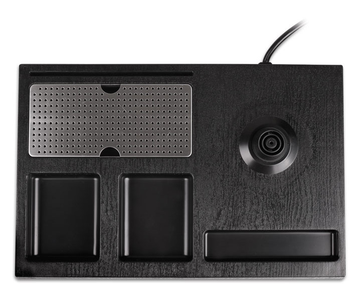 Taca wykonana jest z tworzywa ABS, dzięki czemu jest wygodna do czyszczenia. Posiada wyodrębnione przestrzennie na łyżeczki oraz saszetki z kawą i herbatą.