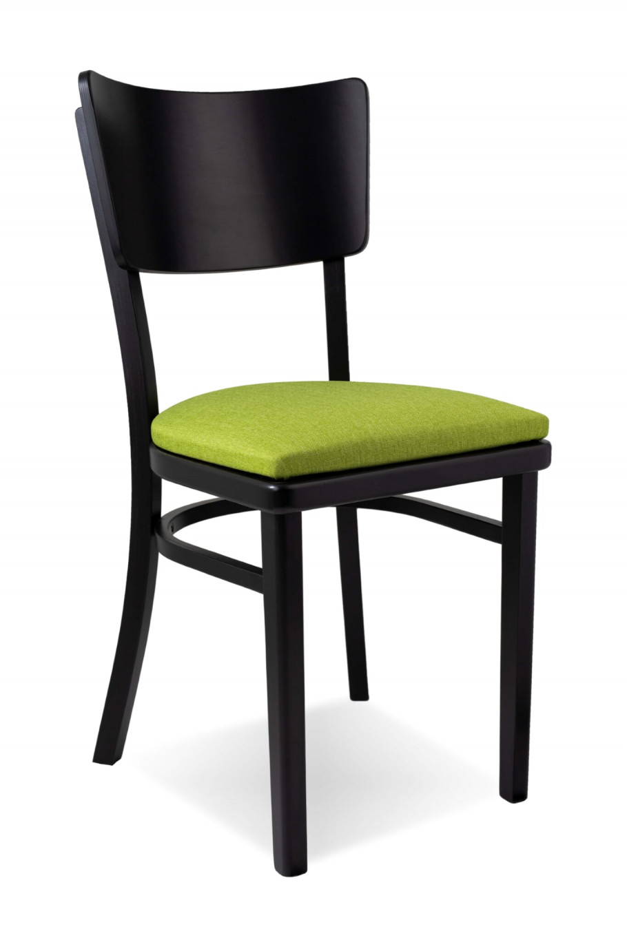 Krzesło z drewna bukowego z siedziskiem tapicerowanym.