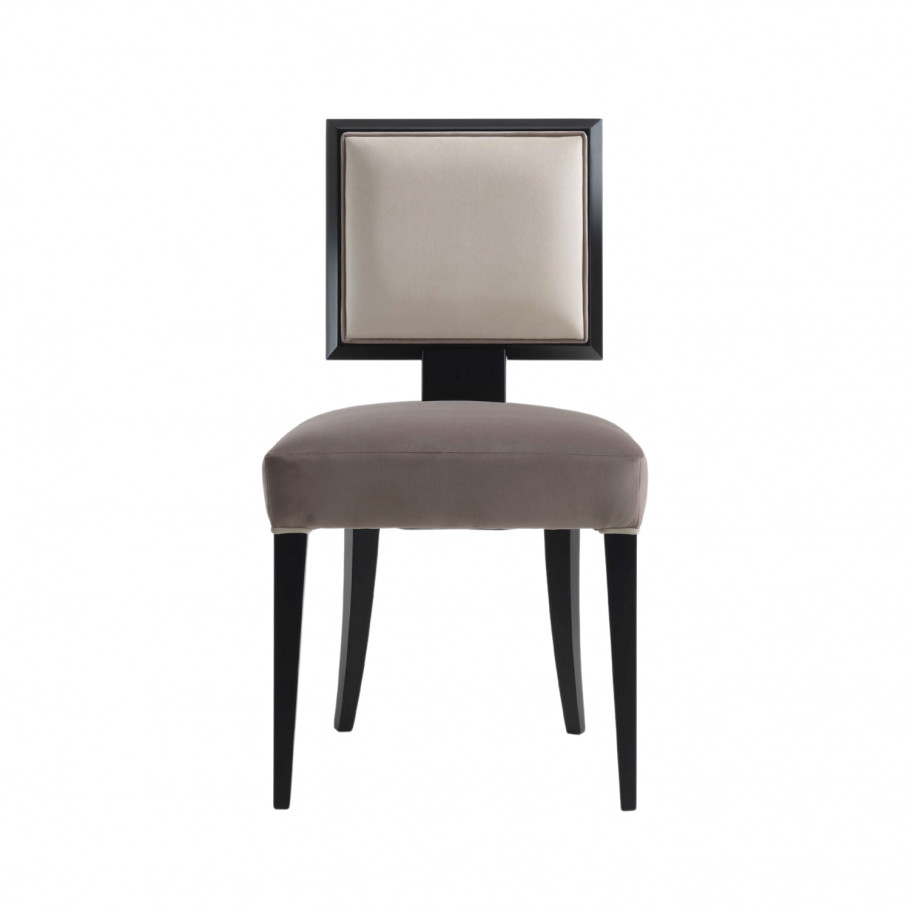 Krzesło tapicerowane szare w stylu skandynawskim. Rama wykonana jest z drewna bukowego i malowana w kolorach bejcowanych lub emalii RAL. Wysokiej jakości aksamitna tkanina w bogatej gamie kolorystycznej.