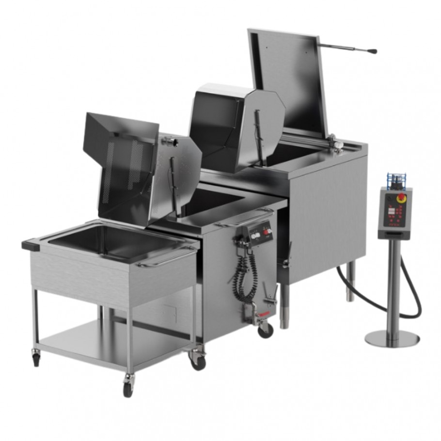 Linia do gotowania COOK & CHILL z opcjonalną wywrotnicą do półautomatycznego załadunku.