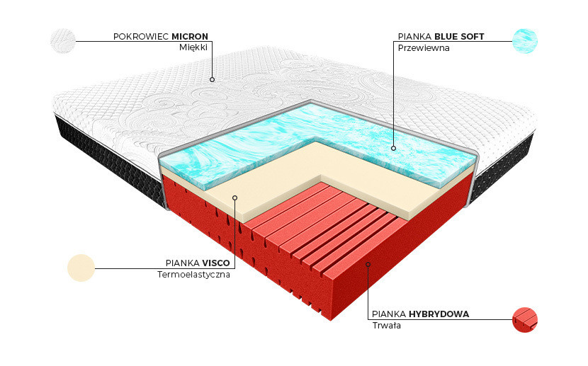 - wierzchnia warstwa wykonana z przewiewnej i sprężystej pianki żelowej Blue Soft,