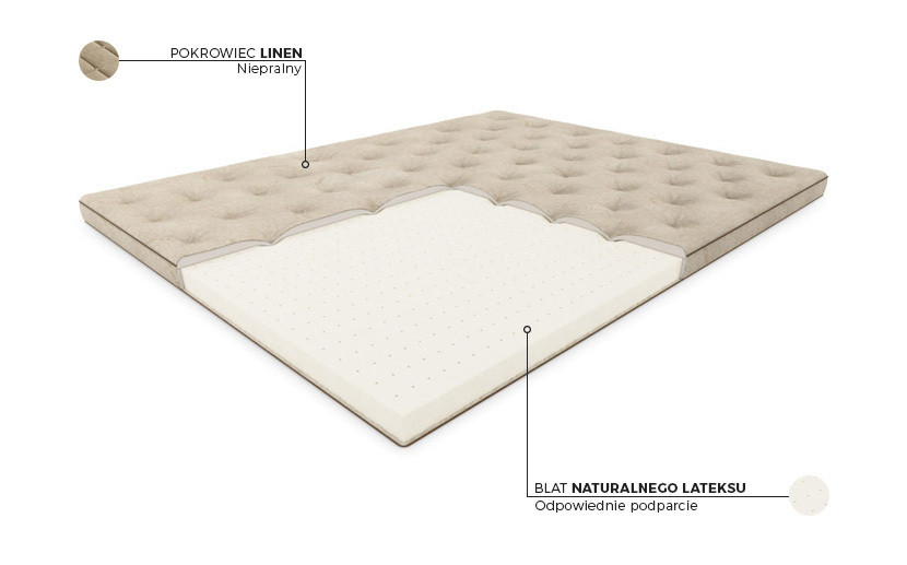 - w całości wykonany z naturalnego lateksu, który charakteryzuje się wysoką higienicznością. Ponadto, jest niezwykle sprężysty i komfortowy, odpowiednio podpierając