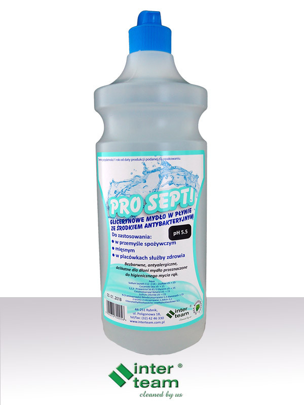 Pro Septi - Bezbarwne, bezwonne mydło w płynie do mycia rąk z zawartością środka dezynfekującego. Przeznaczone do higienicznego mycia rąk w przemyśle spożywczym, mięsnym, gastronomii oraz służbie zdrowia.
