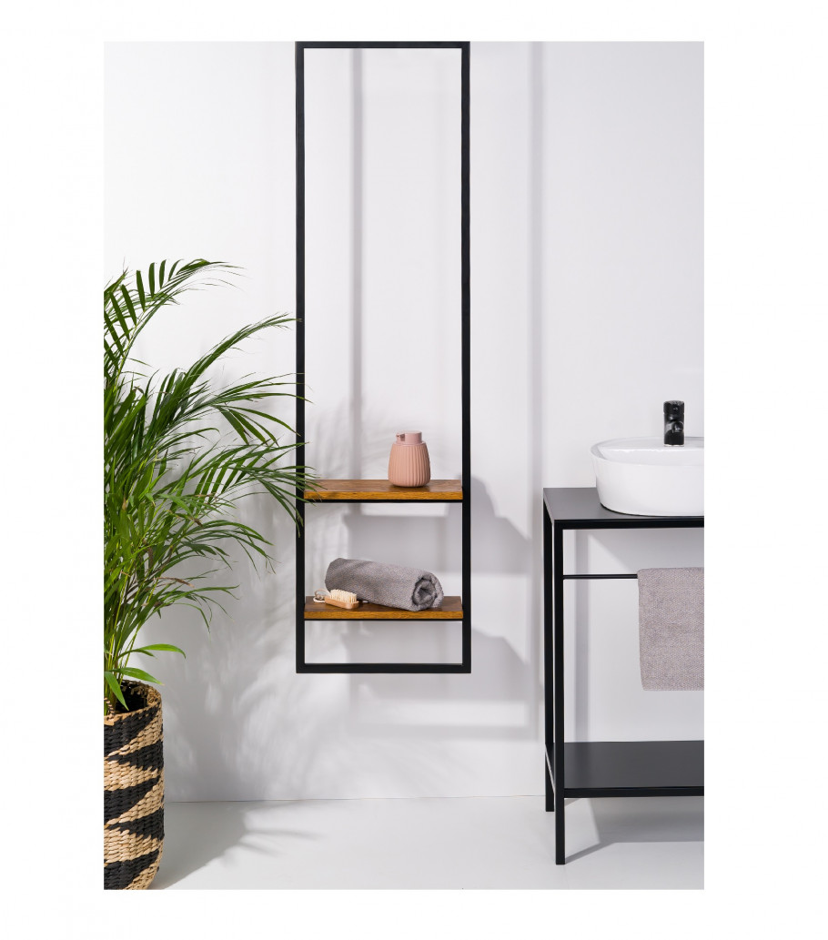 NORA - półka łazienkowa wisząca - delikatna wizualnie, nowoczesna, minimalistyczna półka metalowa do łazienki bazująca na dwóch głównych elementach: stalowej, malowanej proszkowo konstrukcji oraz naturalnym drewnie dębowym. Minimalistyczna forma nada elegancji i oryginalności - półka metalowa NORA sprawdza się w łazienkach, gdzie liczy się lekka konstrukcja oraz skupienie na szczegółach tworzących gustowną całość o wyjątkowych preferencjach estetycznych. Półka łazienkowa wisząca pełniąca funkcję dekoracyjną i organizacyjną - wygląda naprawdę świetnie, półka drewno metal sprawia, iż wnętrze nabiera przytulności. Półka na ręczniki do łazienki - pomieści najpotrzebniejsze akcesoria łazienkowe a przy tym będzie zjawiskową ozdobą ściany. Minimalistyczna, wąska półka do łazienki w stylu skandynawskim, loftowym, nowoczesnym. Zachowanie przestrzeni, prostoty i wrażenia uporządkowania eksponując jedynie niezbędne akcesoria łazienkowe wpływa na estetykę i potęguje rolę relaksacyjną. Meble ręcznie robione, doskonałe do nowoczesnych wnętrz. Modele dla projektantów w zakładce: https://decosteel.pl/do-pobrania/