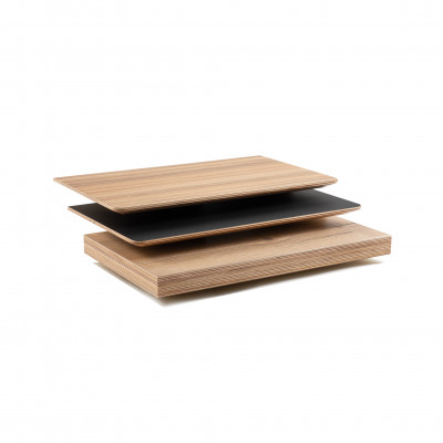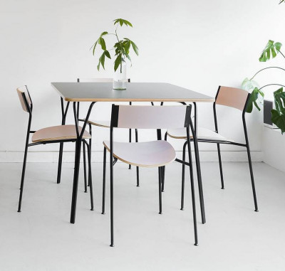 Siedzisko i oparcie ze sklejki pokrytej laminatem - kolory: naturalny dąb, grafit, szary i biały (na zdjęciu)