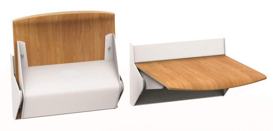 Siedzisko bez oparcia mocowane do ściany. Jest też dostepna wersja z oparciem - za dopłatą.