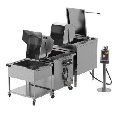 Smażalnik przelotowy marki WP Riehle o modelu DLA150-2 służy do smażenia różnych produktów w zanurzeniu bądź swobodnie pływających.