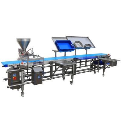 Kęsy ciasta w postaci pączków lub kuleczek twarogowych są umieszczane bezpośrednio w oleju za pomocą automatycznego systemu dozującego. Następnie produkt zostaje przesuwany za pomocą systemy transportowego wzdłuż smażalnika. Czas smażenia jest ustawiany indywidualnie do produktu. Na koniec smażenia produkt przesuwany jest na taśmę, która kieruje go ku końcowi smażalnika.