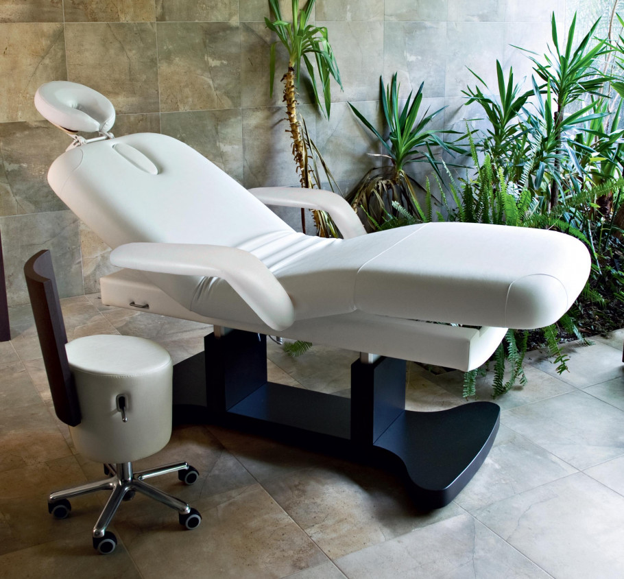 Ekskluzywne wielofunkcyjne łóżko do zabiegów na twarz i na ciało. Elektrycznie regulowana wysokość (góra-dół) oraz położenie materaca (oparcie-nogi), za pomocą pilota. Kolorystka: materac (skaj) - beżowy, biały lub czarny; podstawa (drewniana) - wenge, orzech, biała lub metalowa.