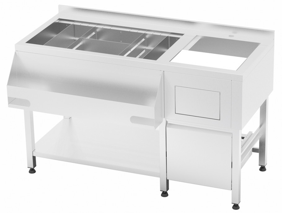 - Wanna z warstwą izolacyjną (zapobiega topnienie lodu) wraz z odpływem - Wysuwany pojemnik na śmieci (kosz ze stali nierdzewnej) z klapą wrzutową - Zlew ze zraszaczem (myjką) - wbudowany pod suwaną deską PVC do krojenia - Pojedyncza półka na butelki z napojami (speed rack SR-1.0) - w cenie. - Dolna półka posiada konstrukcyjne wzmocnienie - Regulowane przegrody kryzy na lód - Rant przyścienny o h 50 mm - Solidna rama - profil 40x40mm - Konstrukcja całkowicie spawana i wykonana ze stali nierdzewnej o grubości 1,2mm co zapewnia wytrzymałość i łatwość w utrzymywaniu czystości Wykonanie stacjie ze zlewem po lewej stronie (lustrzane odbicie) - Gratis.