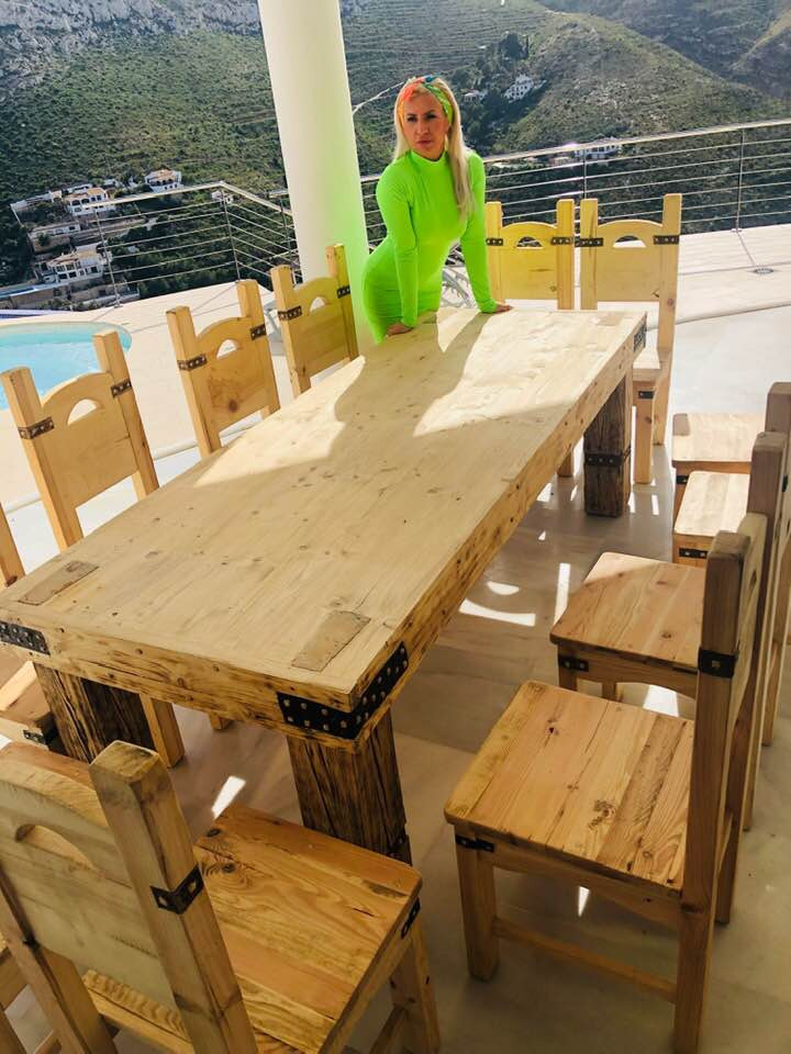 Stół z litego drewna sosnowo-mieszanego.