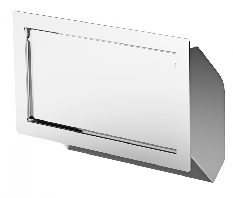 Nierdzewna osłona otworu wrzutowego pojemnika odpadków. Wygodne rozwiązanie do zbierania śmieci, zachowując atrakcyjny wygląd fasad mebli lub wyposażenia. Pozwala zachować czystość i zgodność z normami sanitarnymi i higienicznymi dotyczącymi organizacji wywozu śmieci w publicznych obiektach gastronomicznych. W razie potrzeby także istnieje możliwość wykonania otworu wrzutowego o innych wymiarach oraz z napisami lub grafiką.